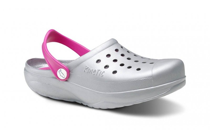 Zuecos Kinetic Plata/Fucsia – Feliz Caminar