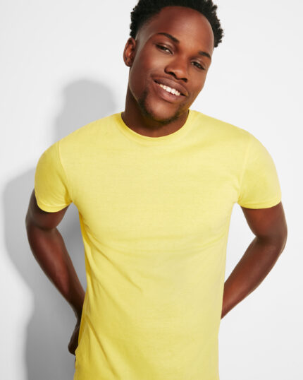 Camiseta de manga corta tubular. Cuello redondo en canalé 1×1 con cubrecosturas interior. Idónea camiseta para aplicar técnicas de impresión.