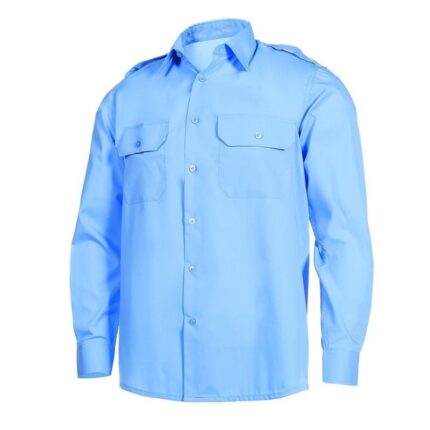Camisa valencia unisex manga larga con charreteras y cuello camisero. Dos bolsillos sin fuelles. Composición: 65%poliéster, 35% algodón