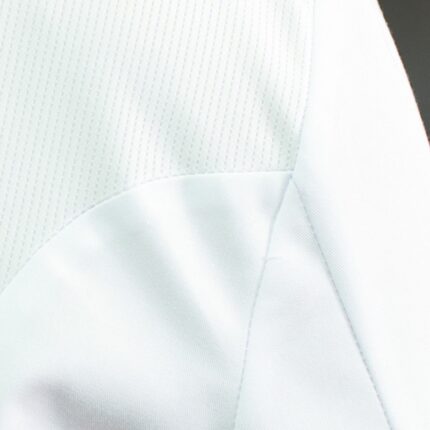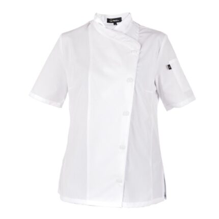 Chaquetilla de cocinero, manga corta, botones de corchete “no contacto con piel”. Bolsillo en pecho y brazo izquierdo. Tejido técnico