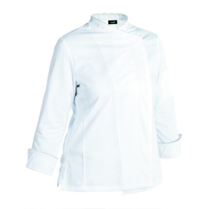 Moderna chaquetilla de chef de gran calidad y alto rendimiento para tu trabajo diario. De corte entallado y manga larga.