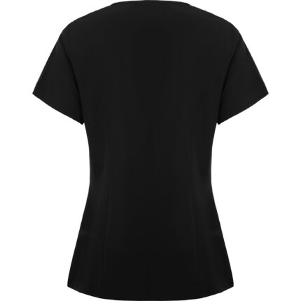 Casaca de servicios de manga corta de mujer. · Escote de pico cruzado. · Dos bolsillos franceses. · Aperturas laterales.