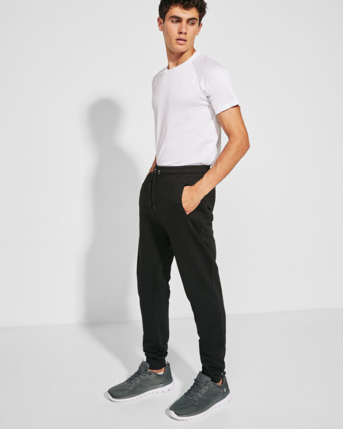 Pantalón largo de chándal, con cinturilla ancha ajustable mediante cordón, bajos de puño ajustado, costuras reforzadas, bolsillos laterales con vivo y bolsillo trasero de esquina con vista pespunteada.