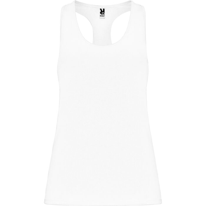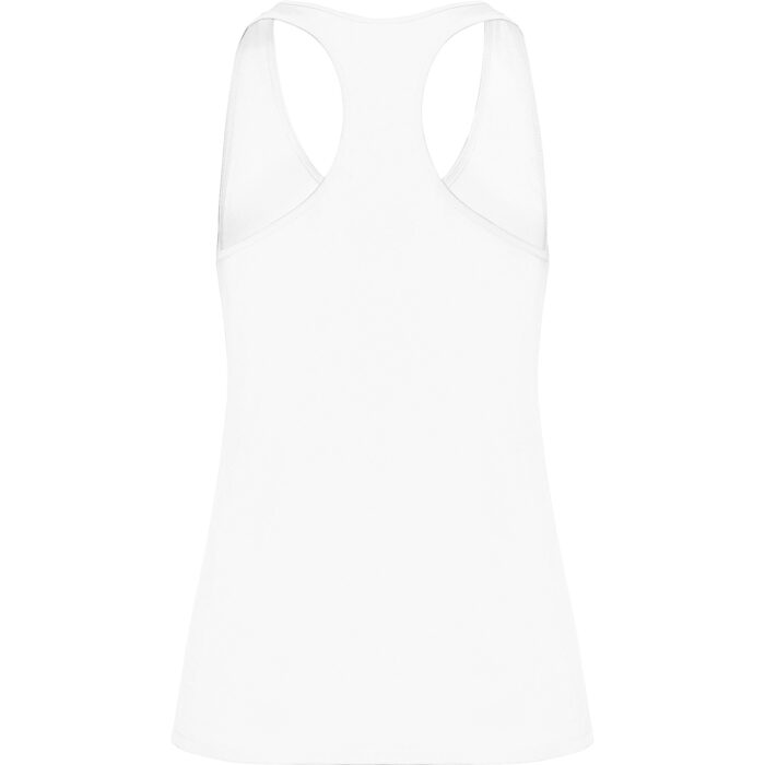Camiseta técnica de tirantes entallada transpirable. Espalda nadadora con escote y sisas ribeteado. Tejido poliéster tacto algodón de secado fácil. Corte entallado.
