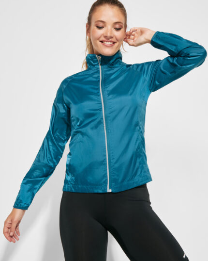 ·Cremallera completa en contraste con protector de barbilla y tirador.