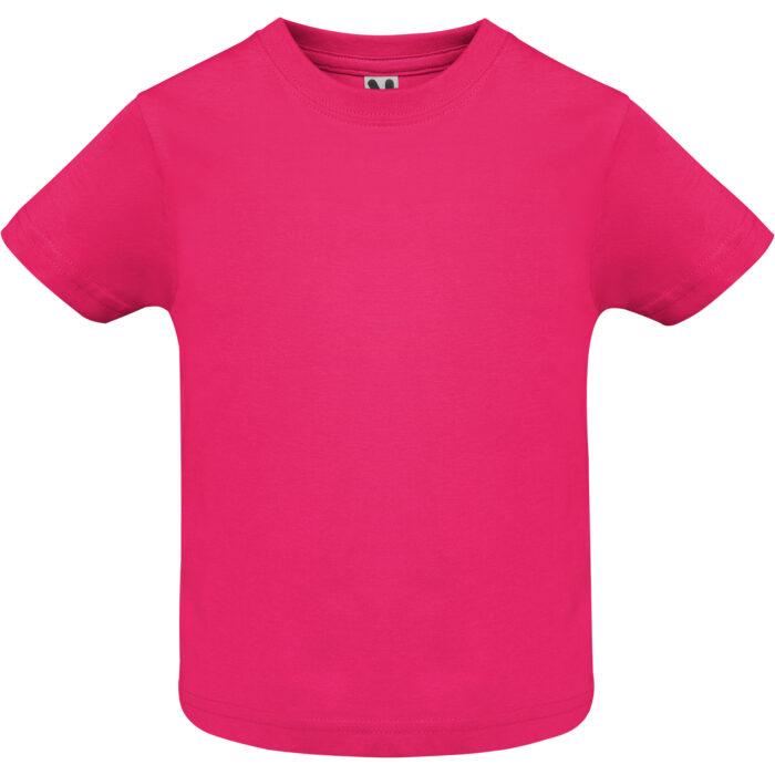 Camiseta de manga corta especial para bebé, confeccionada con tejido en galga fina y acabado compactado. Cuello redondo y apertura en el hombro con corchetes desde la talla 6m a 18m. Talla 2A sin apertura en el hombro. Costuras laterales.