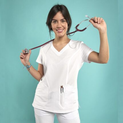 Resistente, cómoda y de fácil lavado. Es una bata blanca muy indicada para enfermeras, farmaceuticas, ópticas, laboratorios, dentistas, esteticistas, podólogos, cirujanos, pediatras, veterinarios, clínicas, cosmética y sanidad en general.