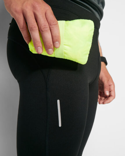 Chaleco técnico ligero de running, con cremallera frontal a tono con protector de barbilla. Ribete elástico en sisa y bajo.