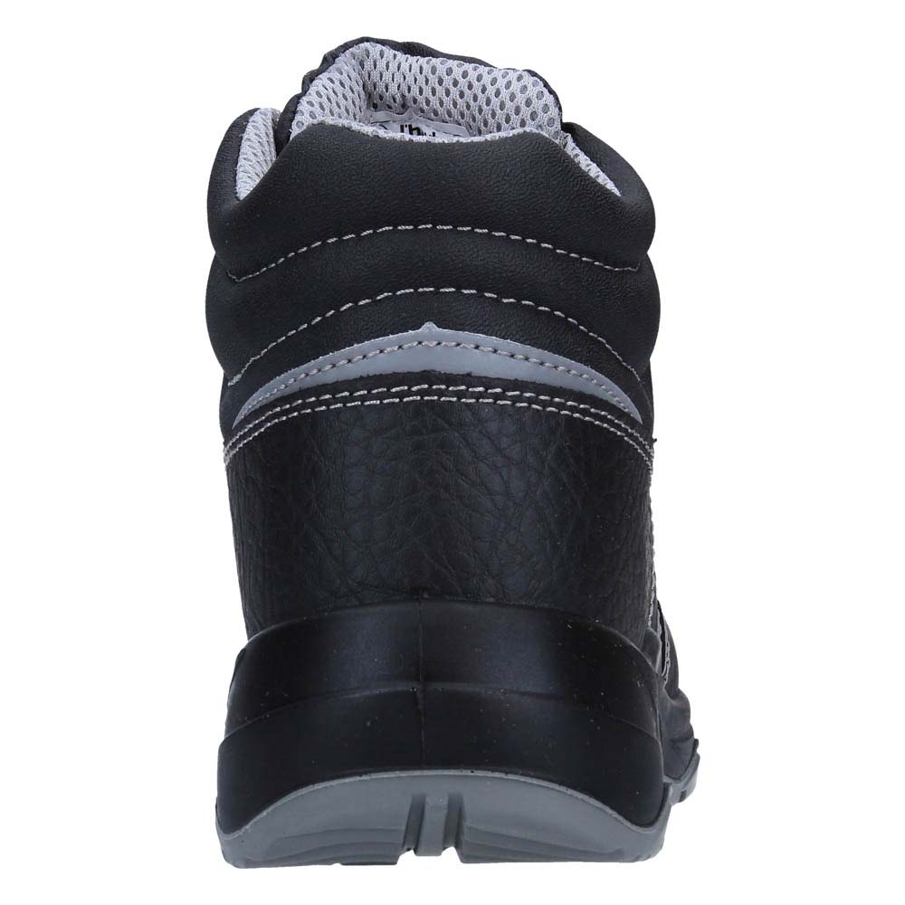 Bota de seguridad Chicago de J’hayber Works. Calzado de seguridad negro, ligero y flexible, con horma ancha, lo que hace que sea un calzado cómodo. La lengüeta acolchada protege el empeine ante golpes y rozaduras, y con fuelle, para evitar la entrada de partículas en el interior. Su corte está realizado en piel flor y el forro interior es de rejilla de doble frontura. La puntera y la plantilla de este modelo son de acero y el piso de poliuretano bidensidad. Este calzado posee excelentes propiedades antideslizantes. Diseñado con elementos reflectantes en laterales, trasera y lengüeta para mejorar la visibilidad del trabajador. Cumple la norma CE: EN ISO 20345:2011Categoría: S3 SR