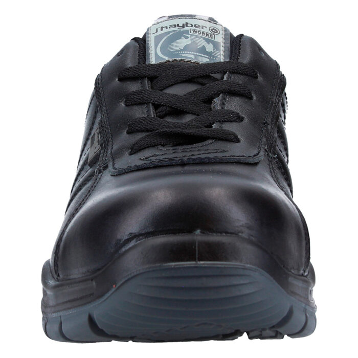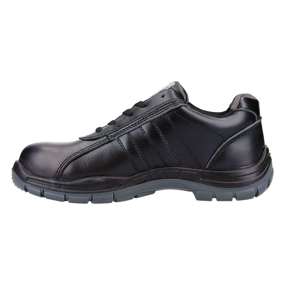 Zapato de seguridad Comfort negro. Calzado ligero y flexible, con horma ancha. El corte realizado en piel flor es de fácil limpieza y el forro interior es de rejilla de alta resistencia, que además de ser transpirable, garantiza la seguridad del pie. La lengüeta acolchada protege el empeine ante golpes y rozaduras. La puntera de este calzado es de composite y la plantilla antiperforación no metálica incorpora la tecnología JHAYFLEX. Suela de inyección de PU + TPU. Este modelo posee excelentes propiedades antideslizantes. Este calzado es 100 % METAL FREE. Cumple la norma CE: EN ISO 20345:2011Categoría: S1P SRC