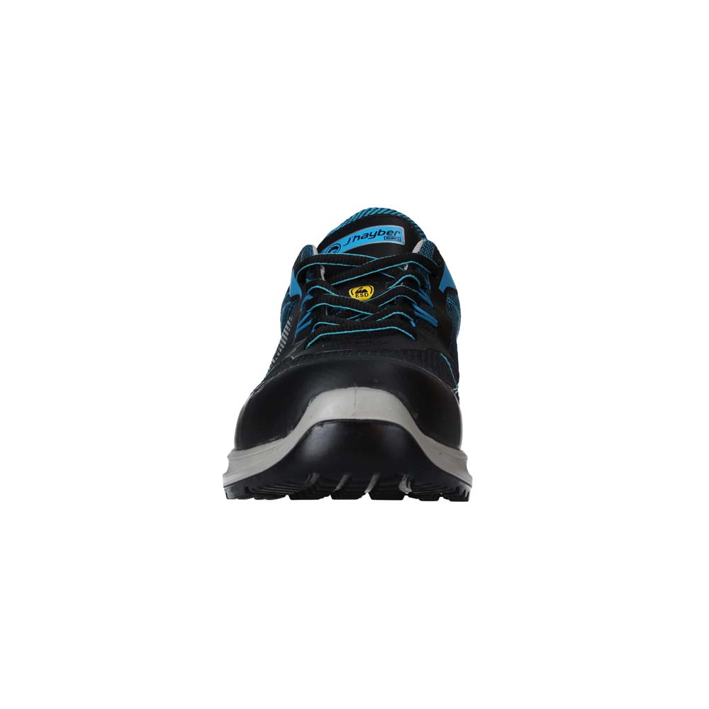 La seguridad está garantizada con su puntera de fibra de vidrio, resistente a impactos de hasta 200 julios, y su plantilla antiperforación JHAYFLEX, fabricada sin metales. Gracias a su diseño 100 % METAL FREE, es más ligero y flexible.