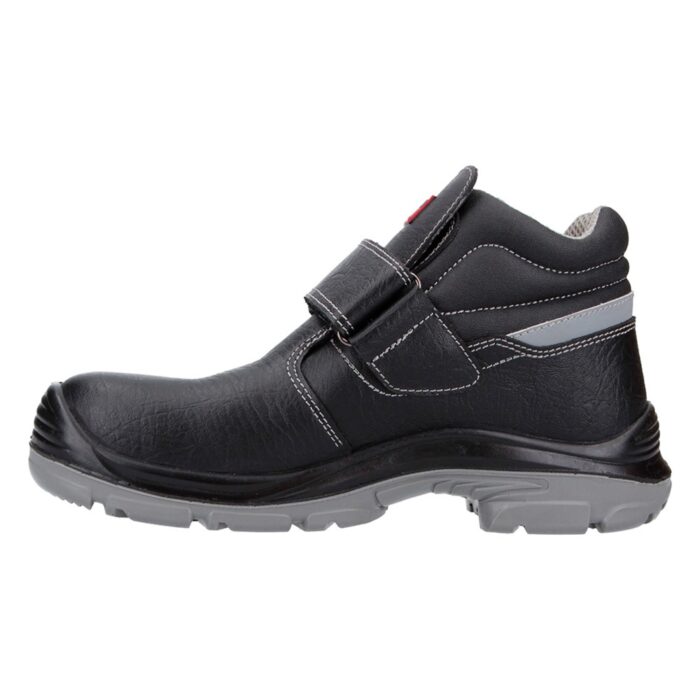 Bota de seguridad New Huracan negro de J’hayber Works. Calzado de seguridad negro, ligero y flexible, con horma de ancho especial, lo que hace que sea un calzado cómodo para afrontar la jornada laboral. Su corte está realizado en piel flor, para una fácil limpieza, e incluye elementos reflectantes que mejoran la visibilidad del trabajador. El forro interior es de rejilla de doble frontura para una mayor transpirabilidad. La lengüeta acolchada protege el empeine ante golpes y rozaduras, y viene con fuelle incluido, para evitar la entrada de partículas en el interior. La puntera de este calzado es de fibra de vidrio, resistente a 200 julios y la plantilla antiperforación no metálica incorpora la tecnología JHAYFLEX. La suela está fabricada en poliuretano bidensidad, con refuerzo en la puntera. Incluye cierre de desprendimiento rápido mediante velcro y cordones para ajuste perfecto. El modelo New Huracan posee excelentes propiedades antideslizantes. Cumple la norma CE: EN ISO 20345:2011 Categoría: S3 SRC