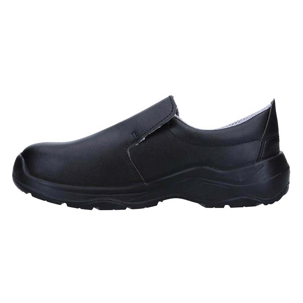 Zapato de seguridad New Nevada de J’hayber Works. Calzado de seguridad negro, ligero y flexible, con horma ancha, lo que hace que sea un calzado cómodo para afrontar la jornada laboral. Este calzado posee excelentes propiedades antideslizantes. El corte de este zapato está realizado con microfibra lo que le aporta impermeabilidad y transpirabilidad. El forro interior del modelo New Nevada es de rejilla de doble frontura, la puntera de acero y el piso de poliuretano bidensidad. Este modelo es de fácil limpieza y muy resistente, incluso contra agentes químicos lo que lo hace ideal para la industria alimentaria. Cumple la norma CE: EN ISO 20345:2011 Categoría: S2 SRC