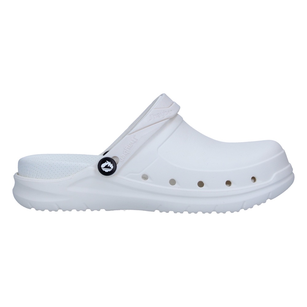 El calzado NIZA pertenece a la colección J’hayber PRO. Esta línea de producto es un calzado de alta calidad, elaborado con materiales Premium, que incorpora la plantilla Infinity Comfort Insole, sobre una suela de EVA ultraligera de alta densidad y antideslizante SRC. Un calzado totalmente ergonómico y de alta tecnología, que garantiza gran confort para cuidar de la salud y bienestar del usuario. Para mayor sujeción del pie, el zueco lleva una tira intercambiable del mismo tono que el calzado y otra de color azul. Además, cuenta con el certificado de Inescop, centro tecnológico del calzado, que avala según la norma ISO 16187, como tratamiento ANTIbacterial con una inhibición de hasta un 99,999%. La plantilla de confort infinito de J’hayber Works, compuesta por PU de baja densidad y tejido poroline, garantiza la máxima comodidad, adaptándose de forma ergonómica al pie. Gracias al refuerzo de PU, proporciona una amortiguación extra del impacto en la pisada. Sus aperturas laterales de transpiración facilitan la evacuación de líquidos. Un calzado cómodo, ligero y adaptable, para el día a día profesional. Su uso está recomendado para el sector sanitario, ya que reduce la fatiga en los pies y su corte hace que, en caso de penetrar líquido, sea fácil de evacuarlo y limpiarlo. Cumple la certificación UE: EN ISO 20347:2012 Categoría: OB SRC E.