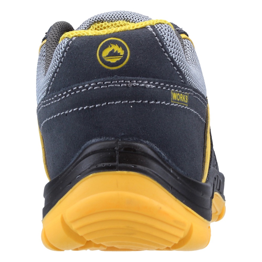 Calzado de seguridad Maverick gris de J’hayber Works. Calzado de seguridad gris con detalles en negro y amarillo, ligero y