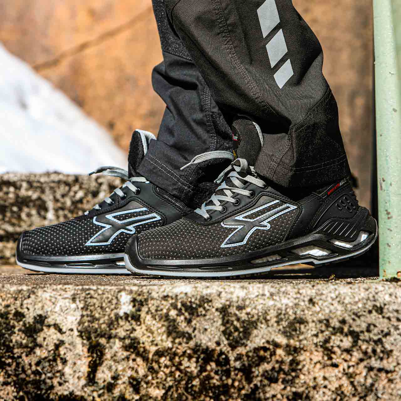 Zapatos de seguridad altos, ligeros y cómodos U-Power de la línea Red 360, con parte superior en PUTEK® star con altisima resistencia a la abrasion, impermeable y transpirable, escudo anti-impactos en el talón. Refuerzo en PU en puntera, puntera de aluminio, antiarrugas, antideslizante y suela de poliuretano PU / PU, S3 SRC CI ESD