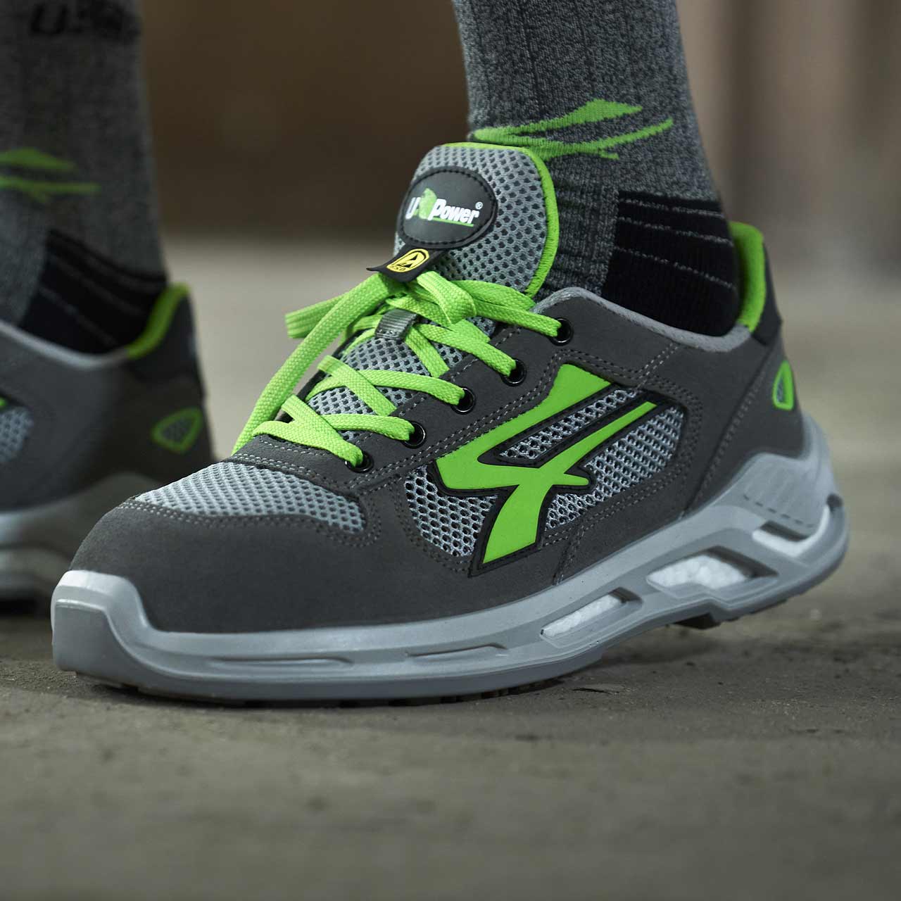 Zapatos de seguridad bajos, ligeros y cómodos U-Power de la línea Red 360, con parte superior de Airnet ultraflexible y gamuza suave, puntera de aluminio, antiarrugas, antideslizante y suela de poliuretano PU / PU, S1P SRC ESD