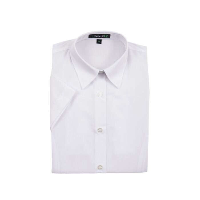 Blusa uniforme de mujer de manga corta. Moderna, con cierre central con bolsillos, entallada y sin bolsillos. Perfecta para vestir