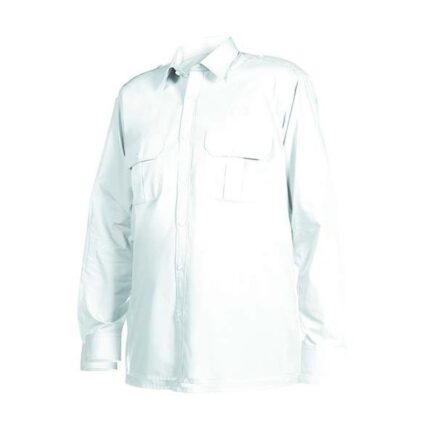 Camisa unisex de manga corta y cuello camisero. Con charreteras, tablón en la espalda, portachapas , bolsillos, fuelles y tapetas. Composición: 65%poliéster, 35% algodón
