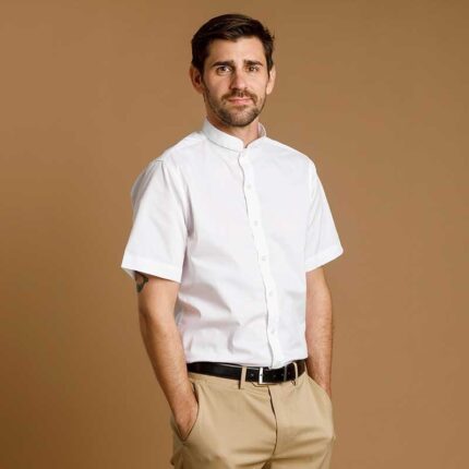 Camisa de hombre elástica de alta calidad. Elegante, resistente y de tacto suave. Ajuste slim fit, manga larga y cuello mao. Con bolsillo en pecho sin coser. Dos botones para ajuste de puño. Costura francesa en sisa y cargadas en costados. Elegante, resistente y de tacto suave. Combinable y muy versátil. Es de las camisas más premium y más solicitadas. Muy transpirable y de tacto suave con acabado easy care de fácil planchado. Además tiene mucha presencia como camisa de traje para dar una imagen distintiva. Su tejido tiene alto porcentaje en algodón lo que la convierte en una camisa muy transpirable y cómoda. Composición: 75% algodón, 20 poliéster, 5%spandex. 110gr.