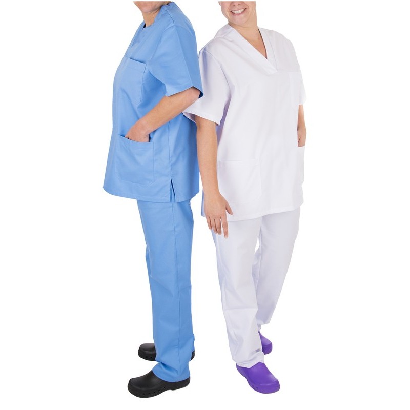Casaca unisex, manga corta, cuello pico, 3 bolsillos y abertura laterales. Composición 65%poliéster, 35%algodón. Gabardina suave 195gr.