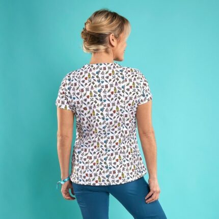Se trata de una casaca médica de corte entallado y cuello en v decorativo en punto. Muy funcional. Equipada con 5 bolsillos de almacenamiento, trabilla para fonendo y cómodas aberturas laterales para brindar mayor comodidad. Destaca además por su diseño con costuras decorativas con hilo en contraste, lo que la convierte en una prenda única por su funcionalidad, durabilidad y estilo, una prenda verdaderamente especial.