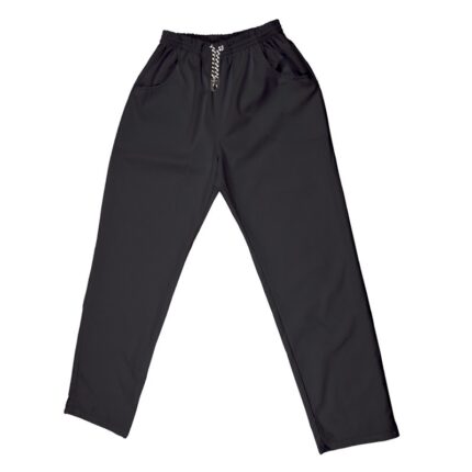 Pantalon chino unisex con cintura eslatica flexible con cordón, tejido elástico y tres bolsillos, dos delanteros y un bolsillo en