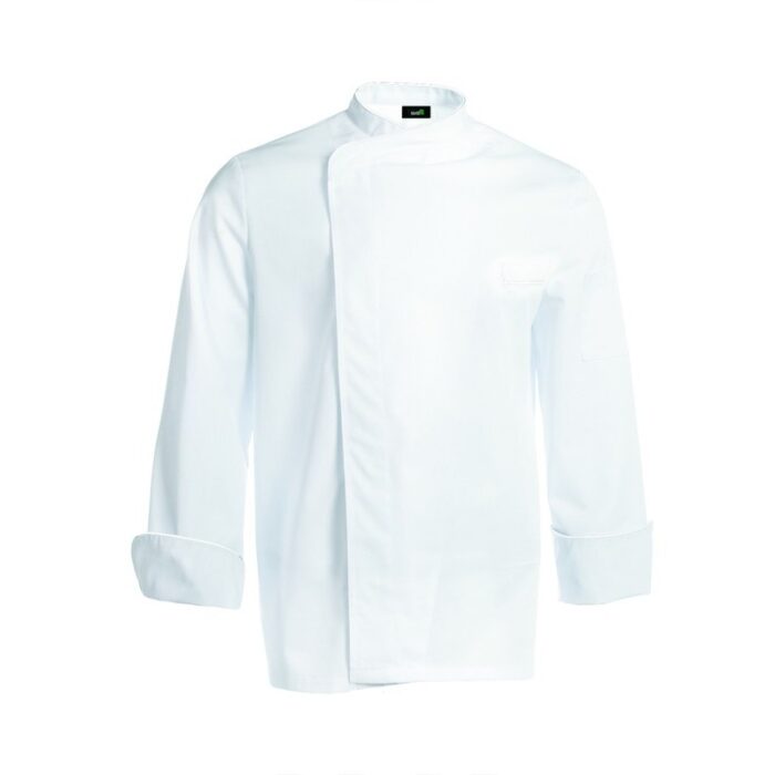 Chaquetilla de chef de gran calidad y alto rendimiento para tu trabajo diario. De corte recto y manga larga. Funcionalidad y estilo indispensables. Confeccionada en tejido resistente y de tacto agradable. Con cómodo cierre de corchete que no contacta con la piel. Decorado con vivos y con funcionales bolsillos en pecho y brazo. Tejido transpirable en espalda. Con espalda transpirable con tejido técnico ligero estilo coolmax, que además aporta mayor elasticidad. Se ajustan a todos los estilos. Si quieres ropa de cocinero profesional con alto rendimiento unifórmate con esta chaquetilla. Ideal para cocinas, catering, reposteria, personal de restauración etc.