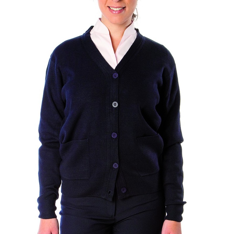 Chaqueta de punto señora cuello pico. Con 5 botones y 2 bolsillos plastrón. Composición: 100% acrilico