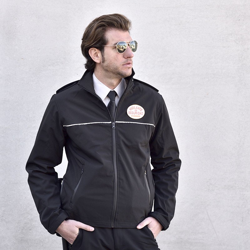Chaqueta softshell para hombre y mujer con funcionalidades indicadas para vigilantes de seguridad. De gran calidad y corte moderno.