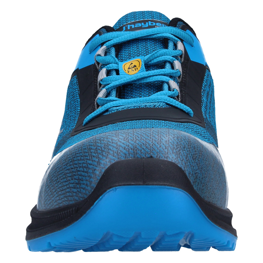 Zapato de seguridad Grip azul de J’hayber Works. Calzado de seguridad azul con detalles naranja y negros, ligero y flexible,