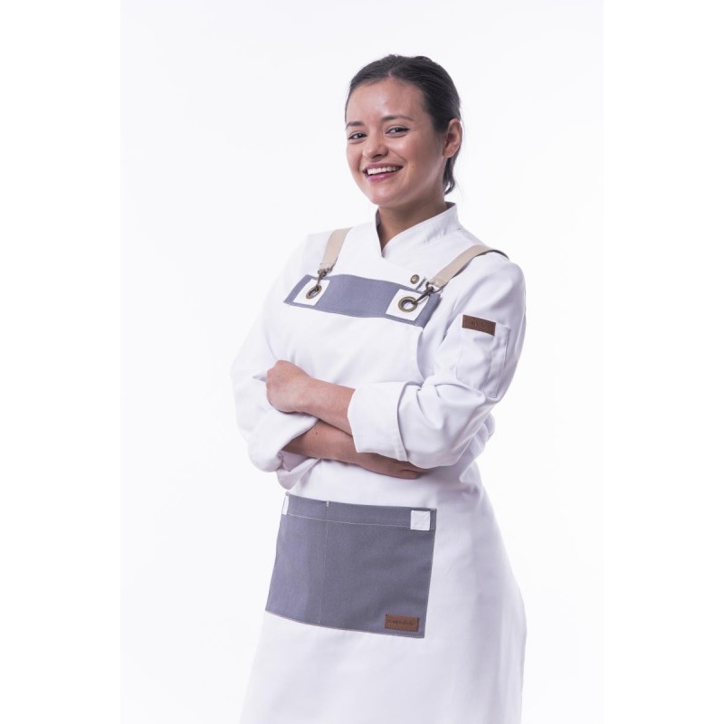 Este delantal de trabajo dispone de un práctico y espacioso bolsillo central dividido en dos. Unisex y de talla única. Ideal para bordar tu logo en pecho,con correas cruzadas ajustables, herrajes en pecho y arandelas de latón. Polivalente para cocina, sala u otros usos. Composición: 100% algodón- 260gr/m2. Disponible en colores: gris, negro, beige, blanco.
