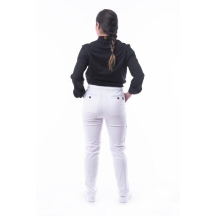 Pantalón elástico tipo chino con cintura elástica flexible con cordón, cinco bolsillos y corte ajustado, modelo unisex. El pantalón chino
