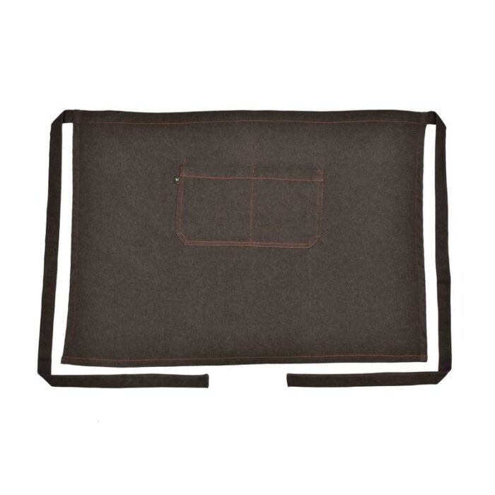 Delantal de largo medio (80x60cm) modelo verona. Bolsillo en el centro partido con costuras en constraste. Composición: tejano 65% poliéster, 32%algodón, 3%spandex