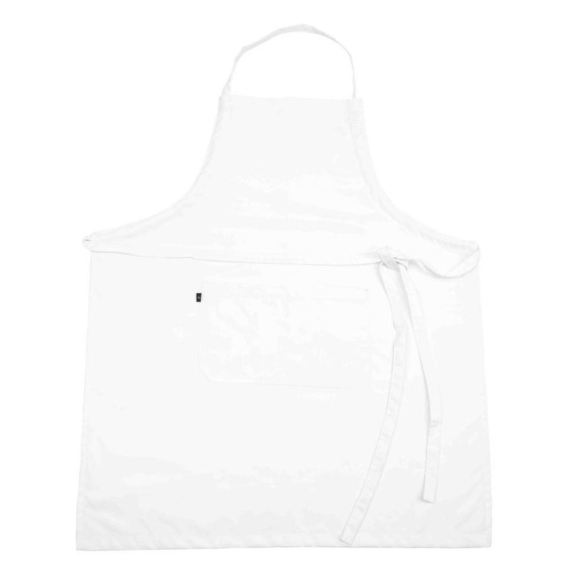 Delantal con peto, bolsillo en el centro con dos compartimentos. Resistente y duradero. Composición: 65% poliéster, 35%algodón. 195gr.