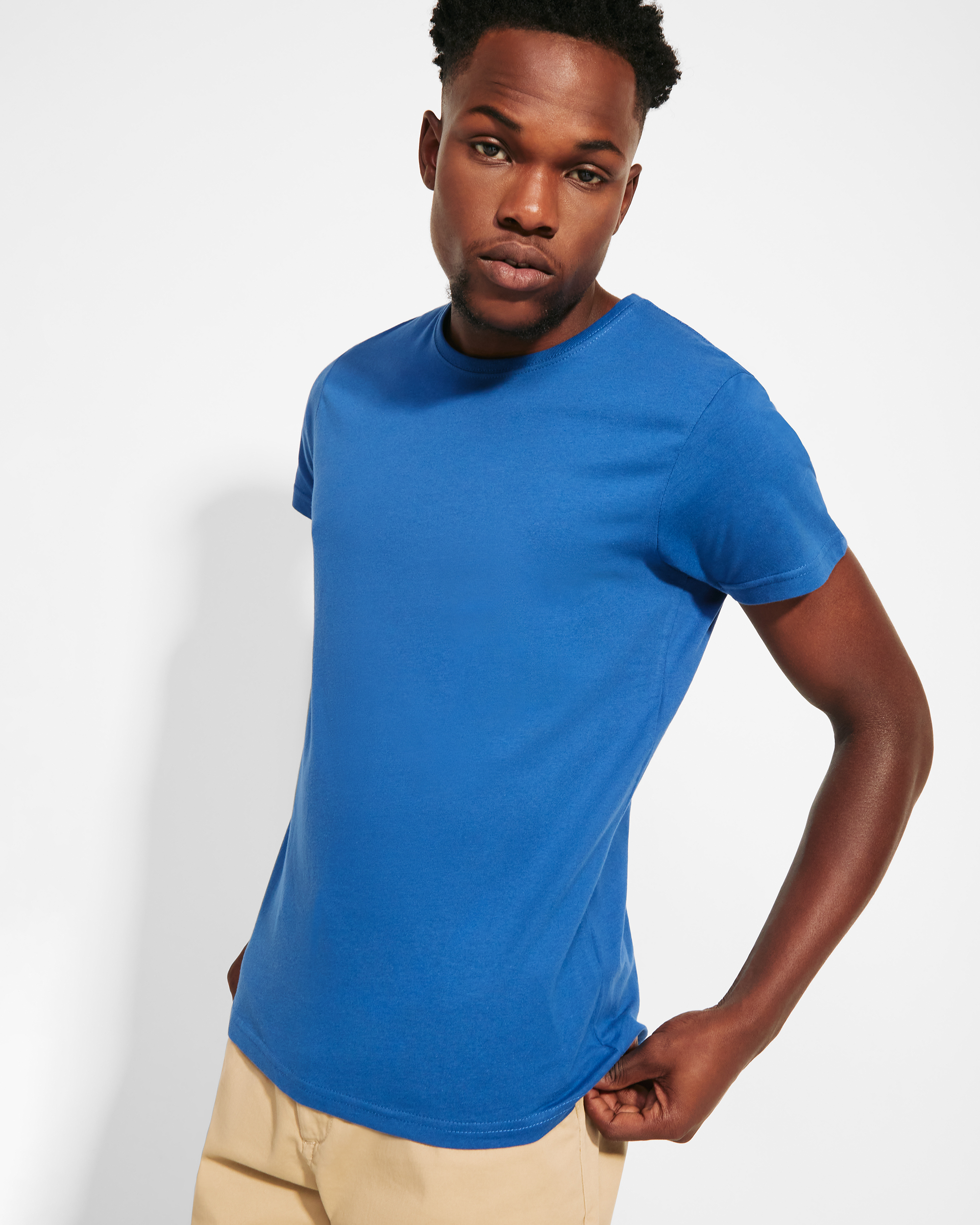 Camiseta de manga corta tubular y escote en pico de 2 capas. Cubrecosturas reforzado en cuello y hombros. Composición: 100%