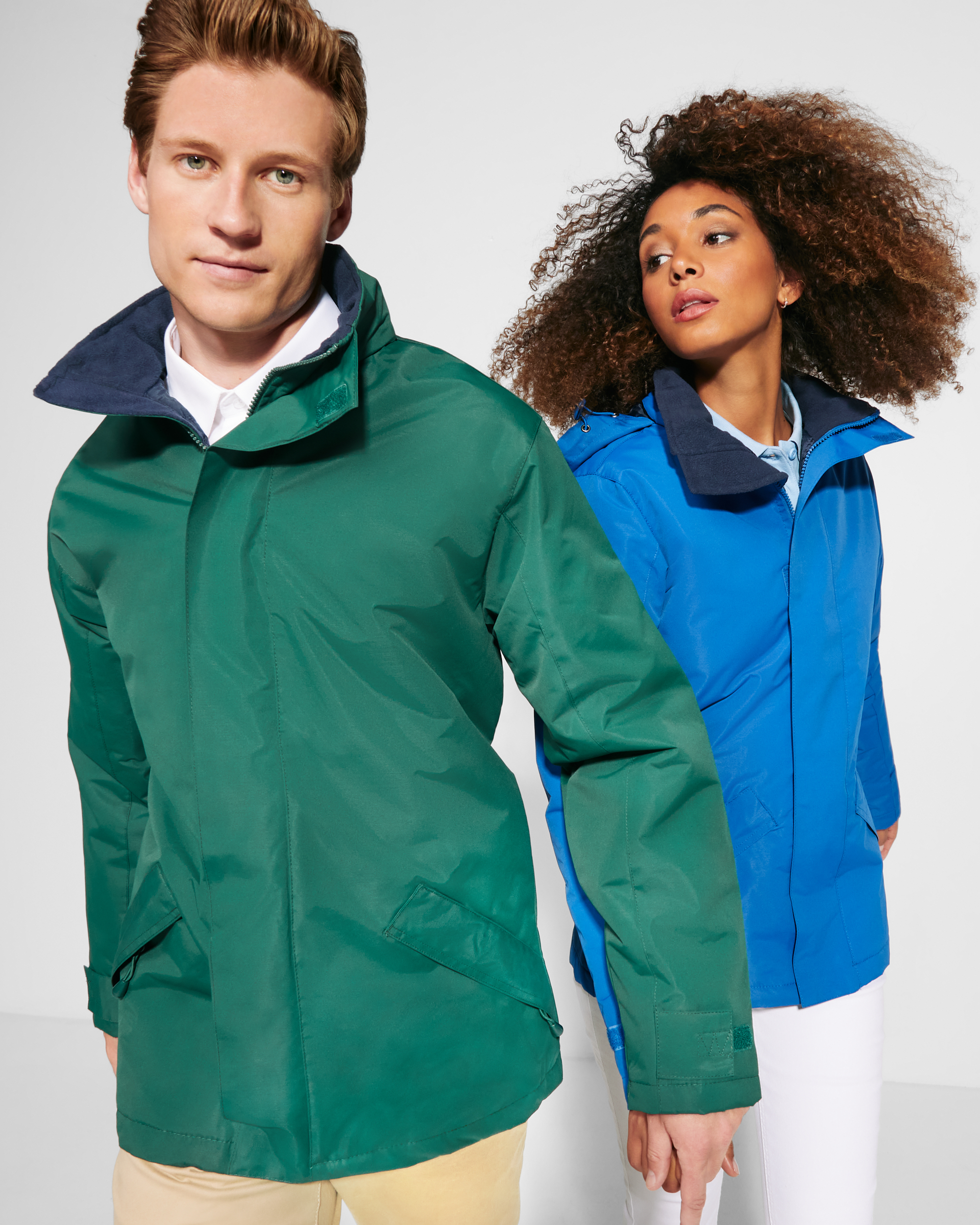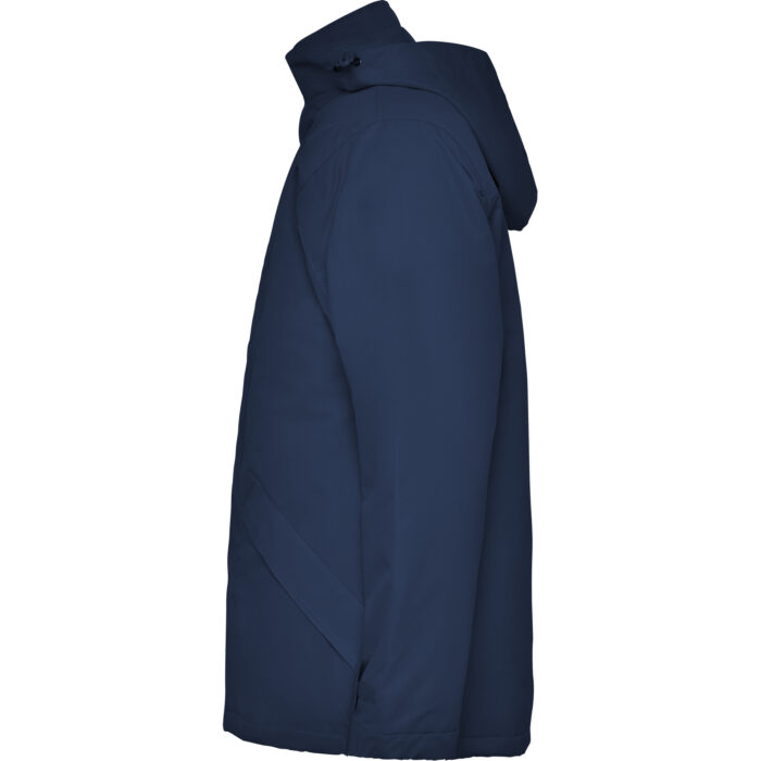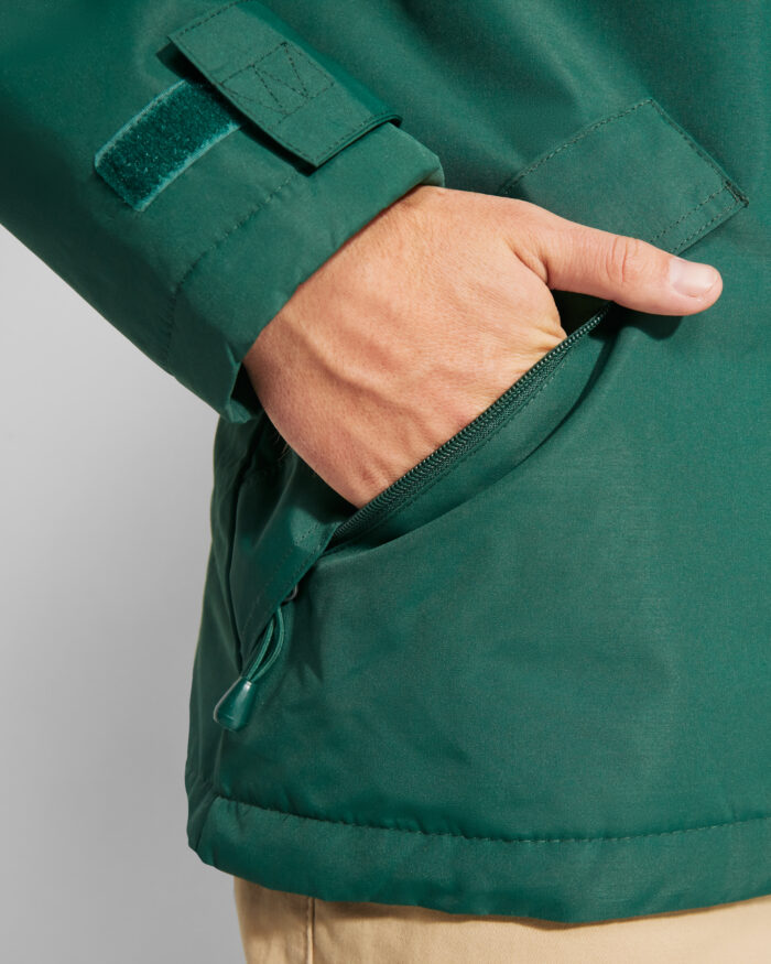 ·Cuello alto con capucha plegada y extraible en cuello con cierre velcro.