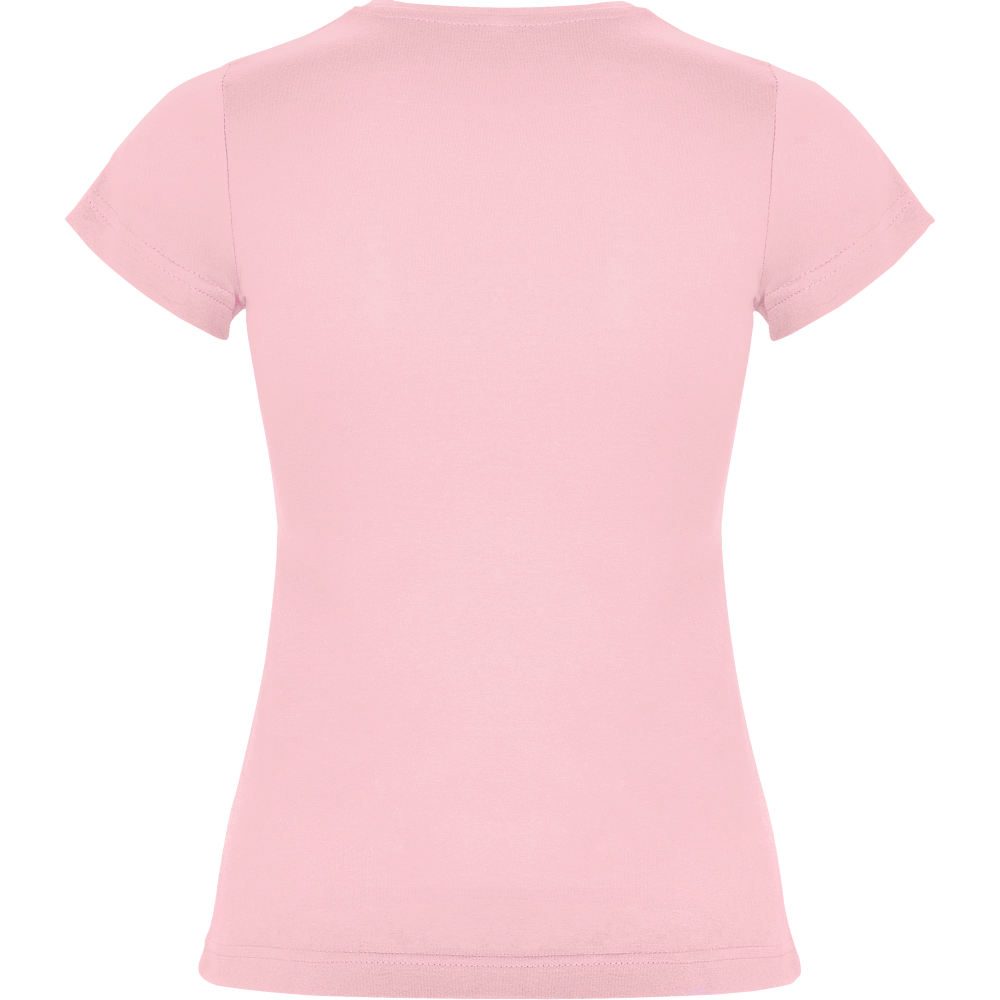 Camiseta de manga corta, escote redondo, ribeteado y pronunciado. Costuras laterales y de corte ajustado. Composición: 100% algodón, punto liso,
