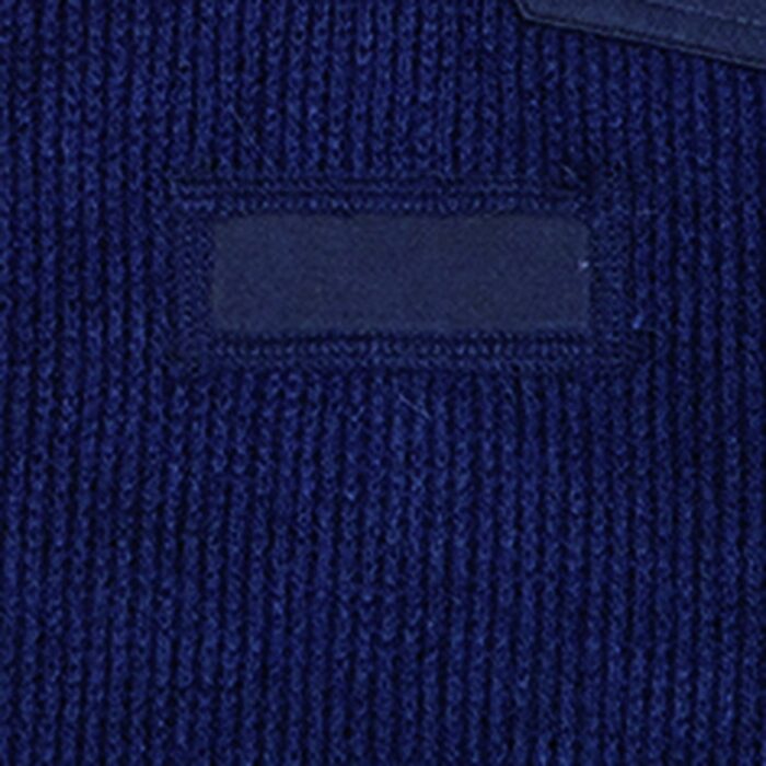Jersey unisex, cuello caja, charretera desmontable, porta chapas, porta bolígrafos, refuerzos en codos y hombros. Composición: 100% acrilico, punto doble