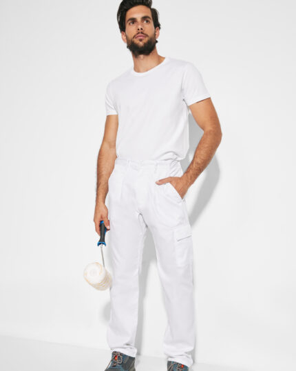 Pantalón largo corte recto y tejido resistente. · Cinturilla ajustable elástica en parte trasera. · Dos bolsillos frontales. · Un
