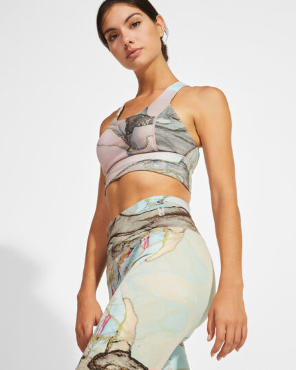 Top deportivo para mujer de alta sujeción. Tirantes entrelazados en espalda. Banda elástica de refuerzo en pieza bajo pecho. Doble