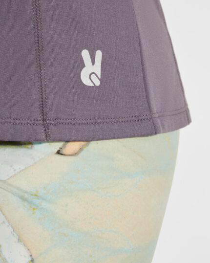 Camiseta técnica multideporte para mujer con manga ranglán. Cuello pico. Tejido poliéster con tacto algodón. Corte entallado. Bajo con forma