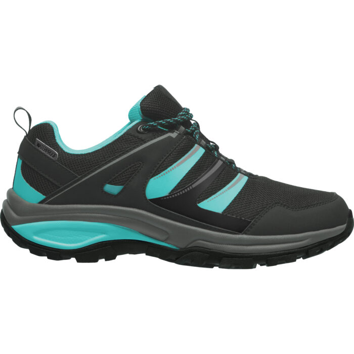 Zapatillas especialmente diseñadas para trekking. Impermeables y con detalles reflectantes. Cordones redondos, malla transpirable y detalles flúor a contraste.