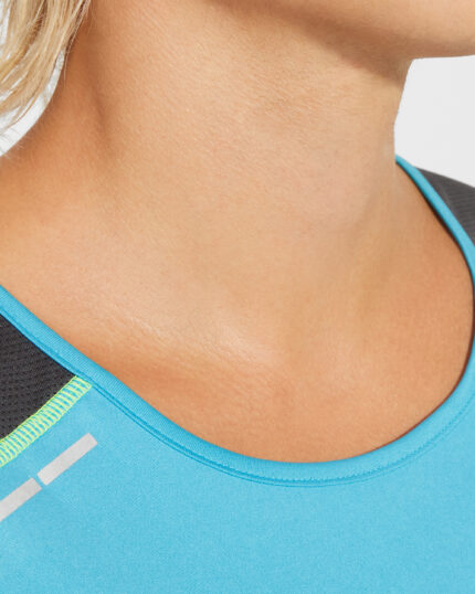 Camiseta técnica de tirantes ancho tricolor. Cuello redondo con cubre costuras de refuerzo y costuras remalladas a contraste. Tejido principal