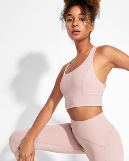 Top técnico de mujer. Tejido transpirable. Espalda con tirantes cruzados de diseño. Sujeción alta. Composición: 80% nylon / 20% elastano