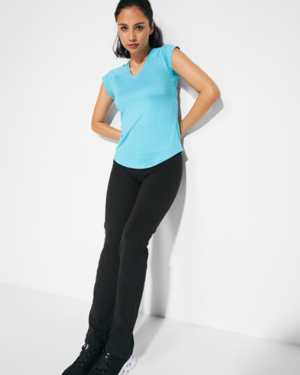 Malla deportiva mujer, media pierna con apertura lateral y cintura elástica.Composición: 94% algodón / 6% elastano, punto liso, 270 g/m².