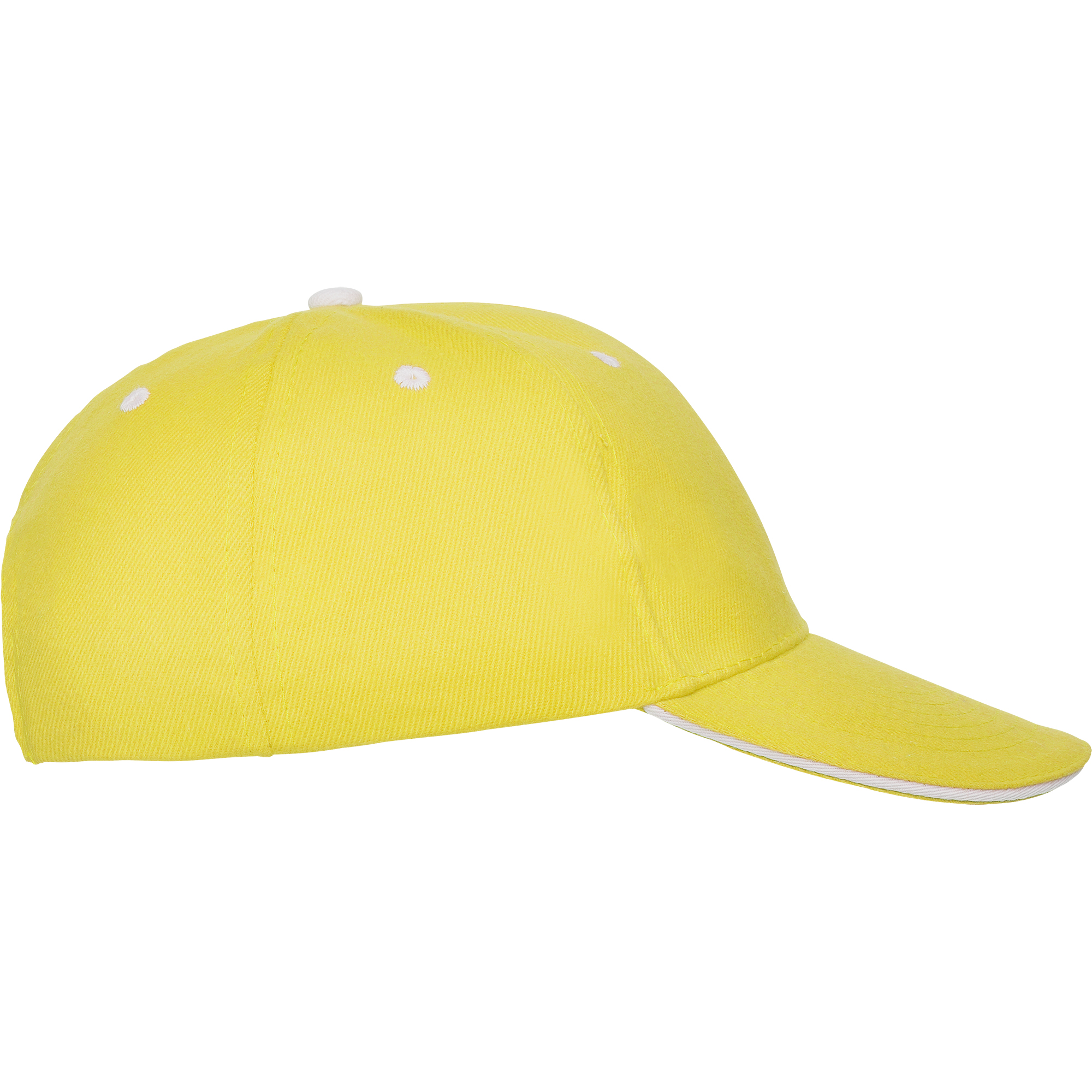Gorra de 5 paneles con sándwich a contraste. 6 líneas de pespunte en visera. Cuatro agujeros de ventilación. Cinta interior