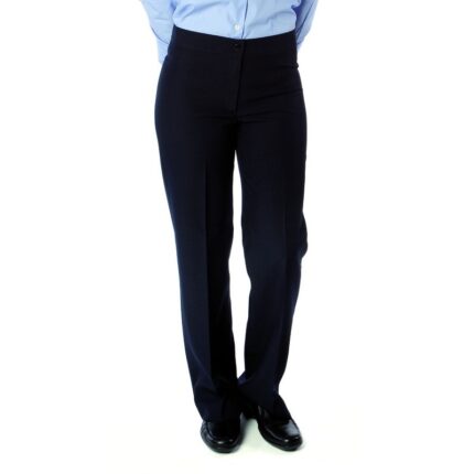 Pantalón traje señora regular fit, sin pinzas y sin bolsillos. Composición: 55%poliéster, 43%lana, 2%lycra. Gramaje 205gr.