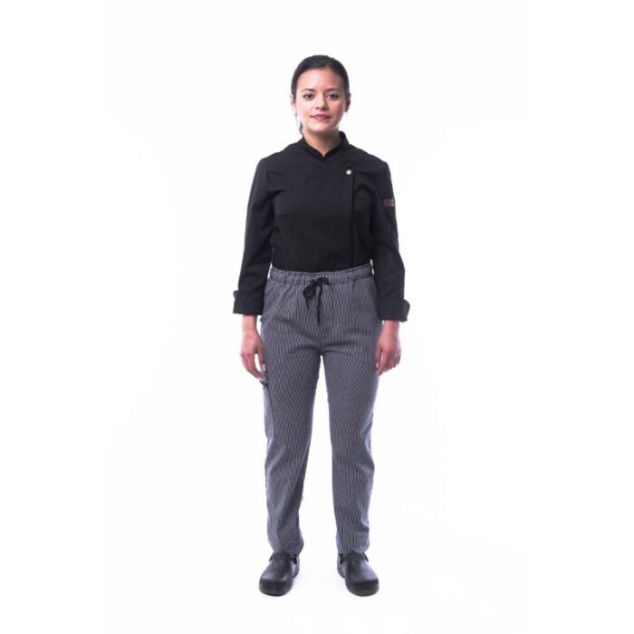 Pantalon chino unisex con cintura eslatica flexible con cordón, tejido elástico y tres bolsillos, dos delanteros y un bolsillo en pierna con cremallera. Raya palace. Composición: 57% algodón, 41% poliester, 2% elastano.