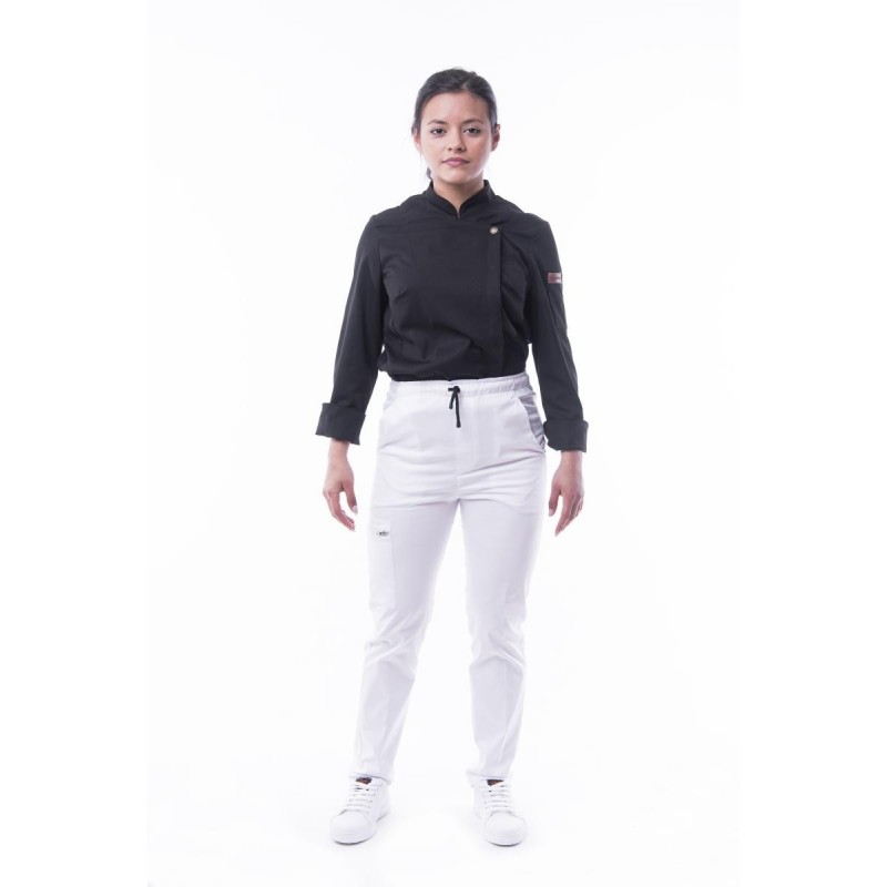 Chaquetilla moderna de cocina y sala de mujer de cuello mao y manga larga con puño. Confeccionada en microfibra primesoft.
